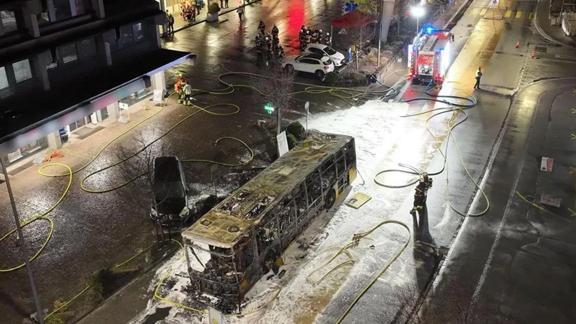 İsviçre'nin Freiburg kantonuna bağlı Kerzers kasabasında dün akşam saatlerinde bir otobüs henüz belirlenemeyen bir nedenle alev aldı.