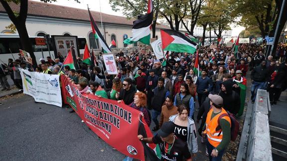 Bu arada, Udine de dahil başkent Roma, Milano gibi birçok kentte İsrail'in spor müsabakalarından men edilmesine yönelik gösteriler yapıldı.