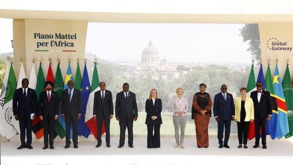 İtalya Başbakanı Giorgia Meloni ile AB Komisyonu Başkanı Ursula von der Leyen'in Roma'daki Villa Pamphili konutunda birlikte ev sahipliği yaptığı zirveye, AfB Komisyonu Başkanı Mahmud Ali Yusuf, Afrika Kalkınma Bankası (AfDB) Başkanı Akinwumi Adesina, Uluslararası Para Fonu (IMF) Başkanı Kristalina Georgieva, Kongo Demokratik Cumhuriyeti (KDC) Başbakanı Judith Tuluka Suminwa, Angola Dışişleri Bakanı Tete Antonio'nun aralarında bulunduğu çok sayıda konuk katıldı.