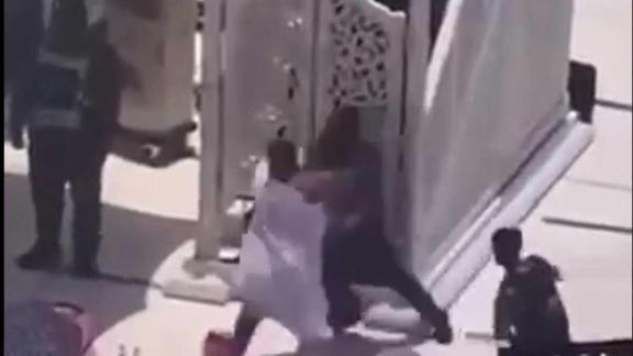 DHA'nın aktardığı habere göre, görüntülerde, kimliği açıklanmayan saldırganın elinde bıçakla minbere girmeye çalıştığı görülüyor.