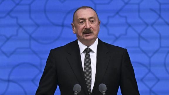 Aliyev, Azerbaycan'ın milli çıkarlarını temel alarak yeni koşullar altında bağımsız politikasını kararlılıkla sürdürdüğünü vurgulayarak, ülkesinin anayasası ve egemen haklarına dayanarak barış, işbirliği ve sürdürülebilir kalkınma için yeni dünya düzeninde etkin bir aktör olmaya çalıştığını ifade etti.