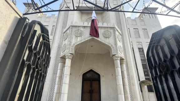 Suriye'nin başkenti Şam'da yeniden açılan Büyükelçilik binasında, Katar bayrağı göndere çekildi.