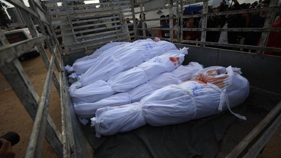 Han Yunus'ta hayatını kaybeden en az 27 kişinin cenazesi ve yaralılar, kentteki Nasır Hastanesine getirildi.