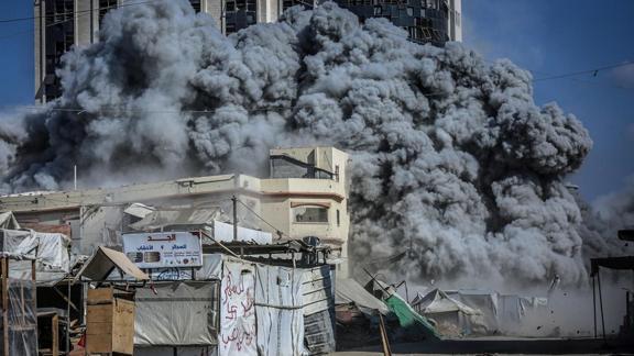 İsrail ordusu, sabahının erken saatlerinde Gazze kentindeki eş-Şati Mülteci Kampı'nda yerinden edilmiş kişilere barınak sağlayan el-Hüsari ailesine ait evi bombaladı.