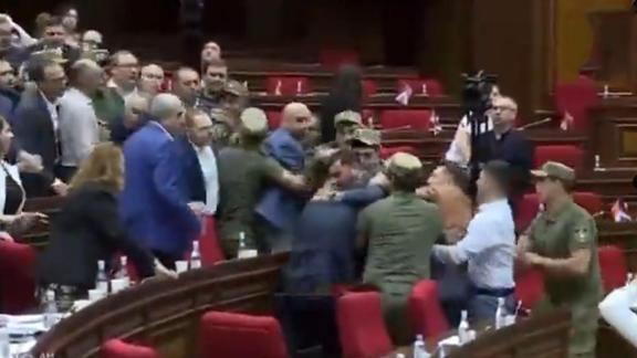 Ermenistan Parlamentosu'nda, muhalefet milletvekili Artur Sarkisyan'ın dokunulmazlığının kaldırılması görüşülürken iktidar ve muhalefet milletvekilleri arasında arbede yaşandı.