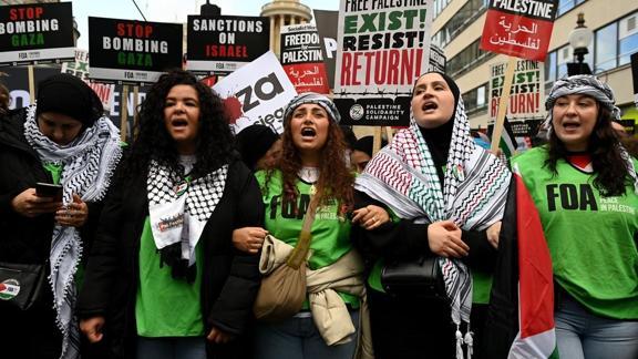 İngiltere'nin başkenti Londra'da düzenlenen Filistinlilere destek yürüyüşü, Londra Metropolitan polisinin güzergah dışındaki eylemlere izin verilmeyeceği ve gerekirse gözaltılar yapılacağı uyarısıyla başladı.
