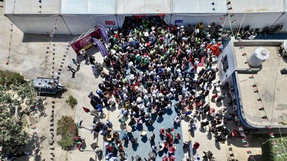 Filistin İçin Ortak Eylem Koordinasyonu sosyal medya hesabından yapılan yazılı açıklamada, konvoyun etrafının güvenlik güçleri ile çevrildiği ve kimsenin giriş-çıkışına izin verilmediği belirtildi.