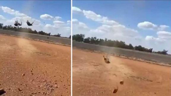Avustralya'daki bir çiftlikte kaydedilen videoda, yıllardır yaşanan en kötü kemirgen salgınında makineden aşağı yağan fareler görülüyor.