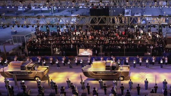 Mısır medyasında canlı yayınla takip edilen törenle aralarında 1. Seti, Hatşepsut, 2. Ramses gibi ünlü firavunların da bulunduğu 18 kral ve 4 kraliçe mumyası başkent Kahire'nin merkezindeki Tahrir Meydanı'nda yer alan Mısır Müzesi'nden, kentin doğu kesimi Fustat'taki Mısır Medeniyeti Ulusal Müzesi'ne götürüldü.
