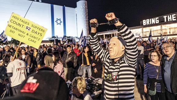 Netanyahu hükümetinin politikalarının Filistin direniş örgütü Hamas'ın "güçlenmesine" imkan sağladığını savunan göstericiler ellerinde, "Bizi aptallar yönetiyor" ve "(Gazze'deki İsrailli) Esirler 92 gündür çile çekiyor, Netanyahu'NUN umrunda değil" yazılı dövizler taşıyarak, "Hemen şimdi seçim" şeklinde sloganlar attı. Gösterinin düzenlendiği Habima Meydanı'na kurulan dev ekrandaki "Şimdi tek umudumuz seçimler" yazısı dikkati çekti.