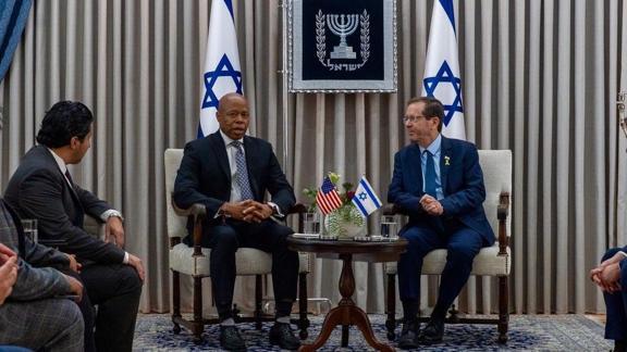 Adams, İsrail Cumhurbaşkanı Isaac Herzog ile Batı Kudüs'teki ofisinde görüştü.