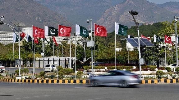 Başkan Erdoğan ile eşi Emine Erdoğan, Pakistan Cumhurbaşkanı Asıf Ali Zerdari ve Pakistan Başbakanı Şahbaz Şerif'in fotoğraflarının yer aldığı afişlerde, "Pakistan-Türkiye dostluğu güçlenerek artıyor" yazıldığı görüldü.