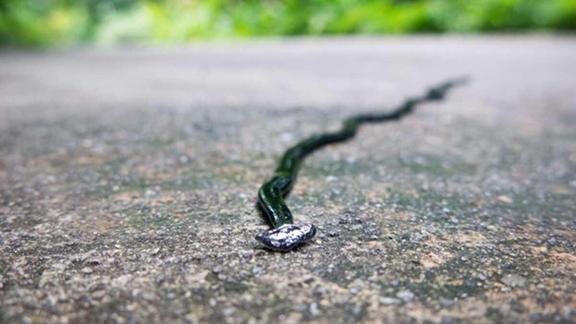Çağrıya cevap veren yaban hayatı ekibi, 'yılanın' aslında Asya'dan gelen istilacı bir tür olan çekiç başlı yassı solucan olduğunu belirtti.