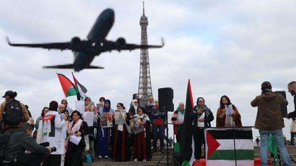 Filistin'e destek veren aktivistler tarafından protestonun yapıldığı ve Fransa polisine konuya ilişkin şikayette bulunulduğu aktarıldı.