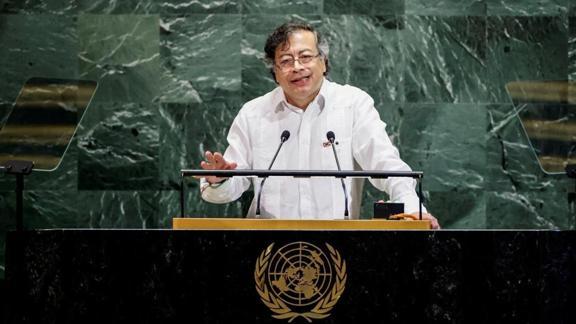 Kolombiya Cumhurbaşkanı Gustavo Petro, Birleşmiş Milletler (BM) Genel Kurul Salonu'nda BM'nin 80. Genel Kurulu görüşmelerinde katılımcılara hitap etti.