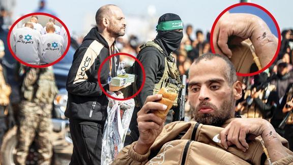 Hamas İsrailli rehineleri hediyelerle uğurlarken, İsrail'den gelen bir fotoğraf İsrail zulmünü yeniden gözler önüne serdi. İsrail Cezaevi Servisi tarafından paylaşılan fotoğraflarda, serbest bırakılan yüzlerce Filistinli mahkuma, Davut Yıldızı ve Arapça "Unutmayacağız ve affetmeyeceğiz" cümlesinin yer aldığı tişörtler giydirildiği görüldü. Al Jazeera'ye konuşan İsrailli bir yetkili, bunun İsrail'in Filistinlileri "insanlıktan çıkarmak" için kullandığı "başka bir yöntem" olduğunu söyledi.