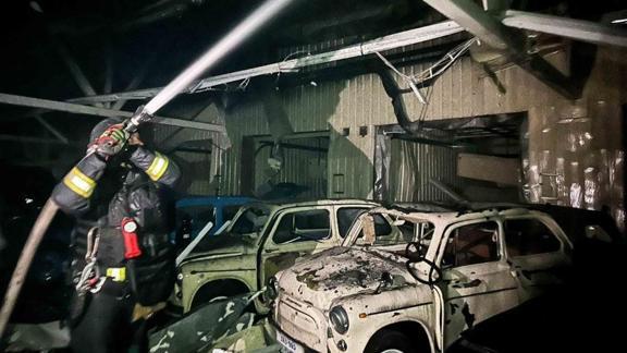 Ukrayna Acil Durumlar Servisi'nin paylaşımına göre, Rus ordusuna ait dron, klasik otomobil müzesinin vurdu.