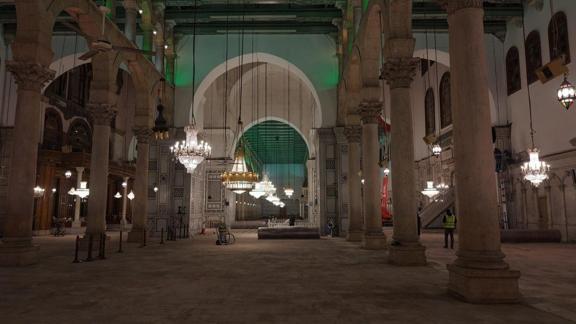 Çalışmalar kapsamında cami içindeki halılar kaldırıldı. Küçük çaplı temizlik ve tadilat işlemlerinin ardından camiye Türkiye'den getirilen yeni halılar yerleştirilecek.