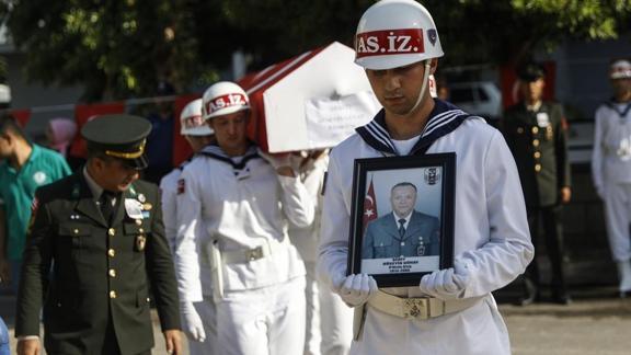 Şehit Günay'ın naaşı, Akdeniz Mahallesi'ndeki aile evinin önünden helallik alınmasının ardından tören için Ulu Cami'nin yan tarafındaki alana götürüldü.
