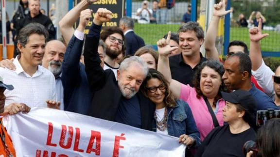 Brezilya'nın güneyindeki Parana eyaletinin başkenti Curitiba'da bir hapisanede 19 aydır hapis yatan 74 yaşındaki Lula Da Silva, hakkındaki tahliye talebinin kabul edilmesinin ardından serbest bırakıldı.