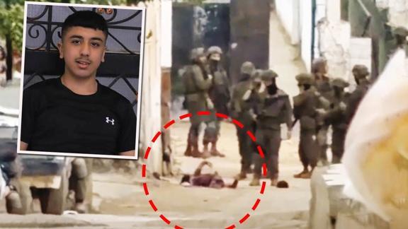 Katil İsrail askerlerinin Batı Şeria'da 14 yaşındaki bir çocuğu vurup, başında kan kaybından ölmesini beklediği anlar, soykırım çetesinin alçaklığını gözler önüne serdi.