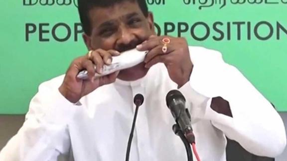 Sri Lanka'da eski Balıkçılık Bakanı Dilip Wedaarachchi, balıkların insanlara koronavirüs bulaştırmadığını ikna etmek için ilginç basın toplantısında çiğ balık yedi. Wedaarachchi, başkent Colombo’da düzenlediği toplantıda balık tüketimindeki düşüşü, balıkların insanlara koronavirüs bulaştırmasına bağladı.