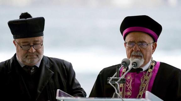 Konuşmaların ardından Türkiye Hahambaşısı İsak Haleva törene gelenlerle toplu dua etti.