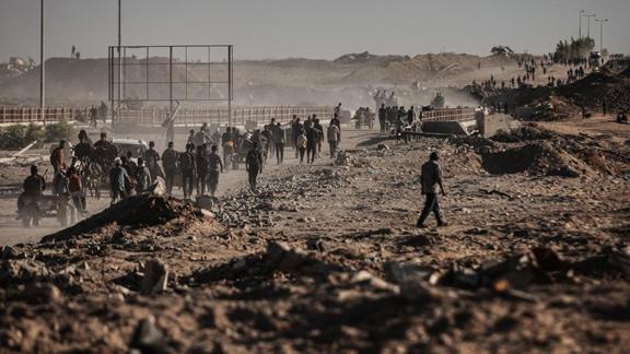 İsrail ordusunun Gazze Şeridi'nden kısmi çekilmesi ve ateşkesin devreye girmesiyle beraber yüz binlerce Filistinli, Gazze Şeridi'nin orta kesimi ve güney bölgelerinden kuzeyine dönmeye devam ediyor.