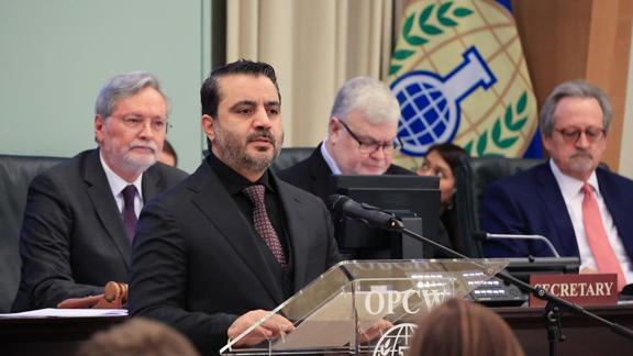 Lahey'deki Kimyasal Silahların Yasaklanması Teşkilatı'ndan (KSYT) yapılan açıklamaya göre Suriye Dışişleri Bakanı Esad Hasan Şeybani, KSYT Yürütme Konseyi'nin 108. oturumunda konuştu.