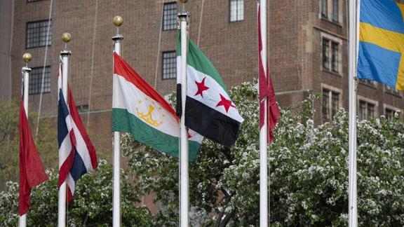 "Devrim bayrağı" olarak bilinen yeni Suriye bayrağı, 61 yıllık Baas rejiminin yıkılmasının ardından yurt dışındaki temsilciliklere asılmıştı.
