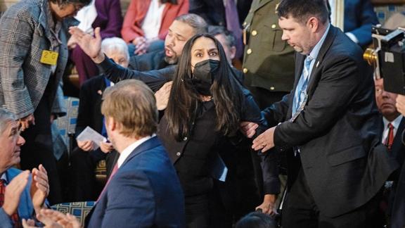Trump, "Göçmen politikamı destekliyorsanız ayağa kalkın" dedi. Demokratların oturması Trump'ı kızdırdı, "Bunlar çılgın, kendinizden utanın" tepkisinde bulundu.