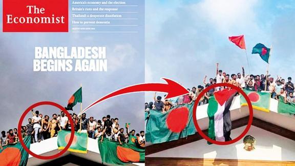 Bangladeş'te Hindistan yanlısı Başbakan Şeyh Hasina'ya başlatılan eylemlerde açılan Filistin bayrağı İsrail destekçisi uluslararası medya kuruluşlarını rahatsız etti. Londra merkezli yayın yapan The Economist gazetesi, Filistin'e sansür uyguladı. Gazete, Bangladeş'te yaşanan olayları manşetine taşırken Filistin bayrağına sansür uyguladı.