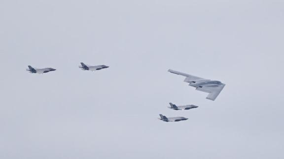 Ayrıca iki liderin buluştuğu anda B-2 hayalet uçak üssün üzerinden geçiş yaptı.