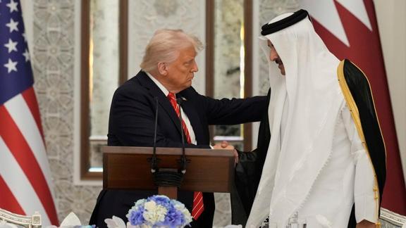 Orta Doğu turu kapsamında Katar'a giden Trump, Doha'da Katar Emiri Şeyh Temim bin Hamad Al Sani'nin ev sahipliğindeki akşam yemeğine katıldı.