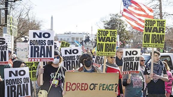 İran'a yönelik saldırılar başta ABD'nin başkenti Washington'da olmak üzere pek çok eyalette protesto edildi. Amerikalılar, saldırıların derhal durdurulmasını talep ederek Trump yönetimin Kongre onayını devre dışı bırakmasını eleştirdi. Cumhuriyetçi tabandaki Trump destekçisi MAGA hareketinin önde gelen isimleri de, "Bu saldırılar 'önce Amerika' yaklaşımıyla örtüşmüyor" diyerek tepki gösterdi.