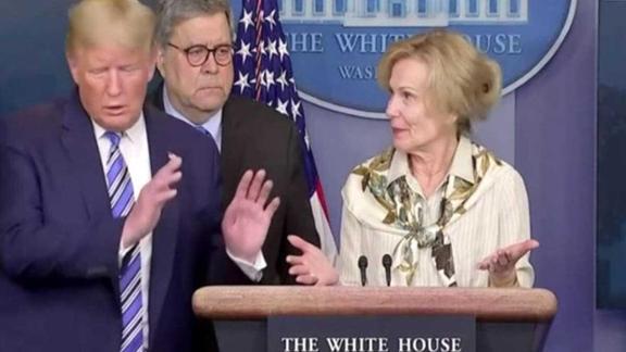 Beyaz Saray Koronavirüs Görev Gücü Koordinatörü doktor Deborah Birx ile kameralar karşısına geçen ABD Başkanı Donald Trump, yapılan şaka sonrası kısa süreli panik yaşadı.