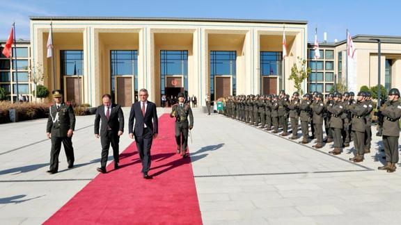 Meclis'e gelişinde KKTC Cumhuriyet Meclisi Başkanı Ziya Öztürkler tarafından karşılanan KKTC'nin 6. Cumhurbaşkanı Erhürman, askeri birliği selamladı.