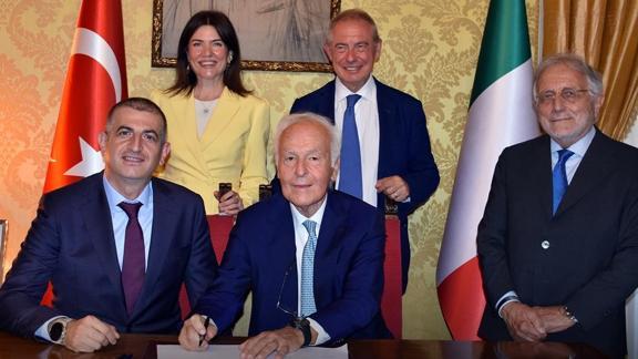 Baykar Genel Müdürü Bayraktar ve Piaggio Aerospace yetkilileri, burada İtalyan Bakan Urso ile Büyükelçi Ülgen'in huzurunda son imzaları atarak, satın alma sürecinin tamamlandığını ilan etti.