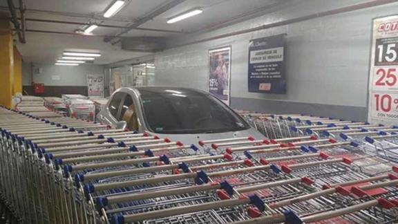 Başkent Buenos Aires’te bir sürücü, arabasını park etmemesi gereken bölgeye, süpermarketin tam önüne park etti. Buna sinirlenen market çalışanları, aracın etrafını alışveriş sepetleriyle çevreleyince ortaya ilginç bir görüntü çıktı. Sinemadan çıkan bir kişinin görüntülediği aracın dört bir yanında, 5 sıra halinde dizilmiş alışveriş sepeti görüldü. Fotoğrafları sosyal medya hesabından paylaşan Arnold Angelini isimli kişi, “Arabanın sahibinin yüzünü görmek için sabırsızlanıyorum. Çalışanları alkışlıyorum, buraya park etmek için saygısız olmak gerekli” sözlerini kullandı.