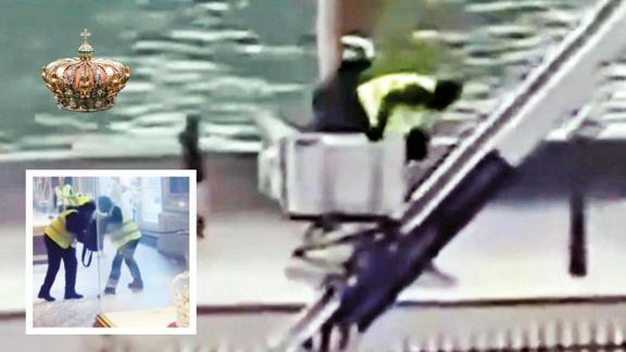 Fransa'nın başkenti Paris'te bulunan dünyaca ünlü Louvre Müzesi'nde gerçekleştirilen mücevher soygununa ilişkin hırsızların kaçma anı ortaya çıktı. Güvenlik görevlilerin kaydettiği görüntüde, üzerinde görevli yeleği olan ve kar maskeli iki hırsızın, yük asansörünü kullanarak değeri 88 milyon euro olan 9 eserle birlikte hızlı bir şekilde indiği görüldü.