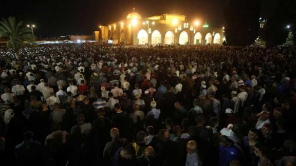 Yüz binlerce Filistinli ile kılınan teravih namazın ardından yapılan duada Filistin'in işgalden kurtuluşu, Müslümanların birliği ve İslam ülkelerindeki savaşların sona ermesi istendi. Kudüs İslami Vakıflar İdaresi'nden yapılan yazılı açıklamaya göre, Batı Şeria'dan gelen Filistinlilerle beraber 400 binden fazla Müslüman, Kadir Gecesi’ni Mescid-i Aksa'da ihya etti. Kapıları sabaha kadar açık kalacak olan Mescid-i Aksa'da gece yarısı teheccüd namazı kılınacak.