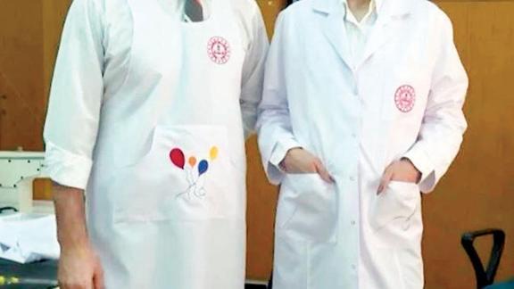 Önlüklerden biri ilkokul, ortaokul ve lise öğretmenleri için klasik "beyaz önlük", diğeri, anaokulu öğretmenle rinin etkinlik sırasında rahat kullanımına uygun üretildi.