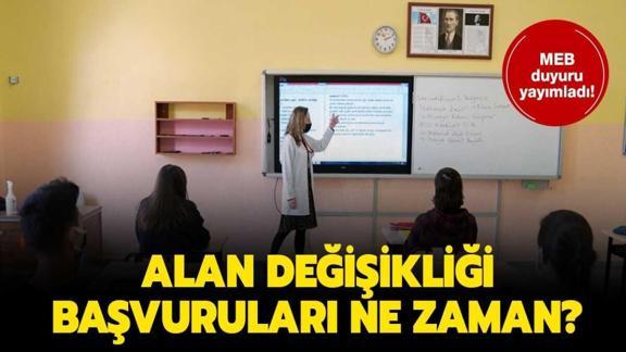 MEB alan değişikliği ön başvurularının sistem üzerinden alınması ve onay süreci 7-11 Şubat 2022 tarihleri arasında gerçekleştirilecek.