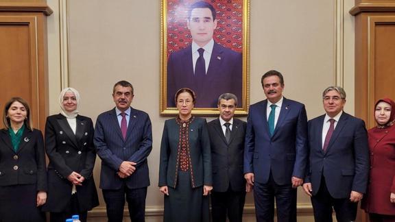 "Ortak Türk-Türkmen Okulu ile ilgili desteklerinden dolayı Türkmenistan tarafına teşekkür ederim. Ayrıca karşılıklı olarak müfredatlarımızın gözden geçirilmesi bizim için önemli. Ortak tarihimize ve kültürümüze ilişkin müfredatlarımızda yer almasını arzu ettiğiniz konuları birbirimizle paylaşarak beraberce bu hususları değerlendiririz. Karşılıklı işbirliğini geliştirmek için atılacak bir adım varsa harekete geçmeye hazırız. Kardeşlik hukuku için eğitim işbirliği anlaşmasının imzalanmasının hızlanması elzemdir. Ortak yapacağımız çalışmalar dünya mirası için önemlidir."