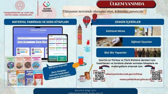 "Ülkem Yanımda" platformu, ders kitapları, sesli kitaplar, eğitici videolar, müzikler ve interaktif oyunlar gibi zengin dijital içeriklerle öğrenciler için çok yönlü öğrenme ortamı oluşturuyor.