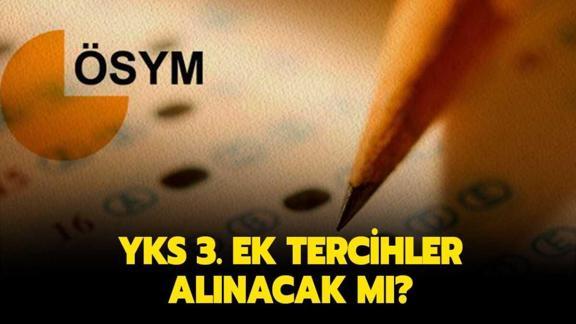 YKS 3. ek tercih dönemi olmayacak. ÖSYM tarafından yapılan son duyurulara göre YKS 2. ek tercihler de bu seneye özel olarak alındı. Seneye 140 barajı için yeniden ek tercih alınıp alınmayacağı henüz bilinmiyor. Bu sene yerleşemeyen adayların YKS 2022'ye katılmaları gerekiyor.