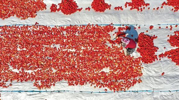 Diyarbakır'ın Karacadağ bölgesinde yetiştirilen domatesler, her yıl kurutulduktan sonra dünyanın dört bir tarafına ihraç ediliyor. Girişimcilerin Karacadağ'da kiraladığı arazilerde ve anlaşma yapılan çiftçilerle 4 bin 226 dekar alanda nisan ayında fideleri toprakla buluşturulan kurutmalık domateste hasat başladı. Tonlarca domates, hasadın ardından beyaz örtülere serilerek kurutuluyor. Bunaltıcı sıcakta tarlalarda işçilerin topladığı domatesler araçlarla getirildiği kurutma alanında yüzlerce kişi tarafından ikiye kesilerek, örtüye serilip tuzlanıyor. Kurutma işleminin ardından domatesler, firmalar aracılığıyla ABD ile Arap ve Avrupa ülkelerine ihraç edilecek. Girişimci Muzaffer Işıklı, Karacadağ bölgesinde üretilen kurutmalık domatesin çok kaliteli olduğunu söyledi. 20 bin ton domates üretiminin gerçekleştiğini belirten Işıklı, bölgenin ve Türkiye'nin ekonomisine önemli katkı sunulduğunu söyledi.