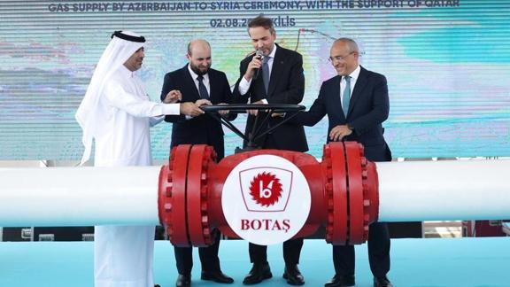 Azerbaycan gazının Türkiye üzerinden Suriye'ye sevkine başlanmasıyla ilgili törene Azerbaycan, Türkiye, Suriye ve Katar hükümet temsilcileri ile resmi yetkililer katıldı.