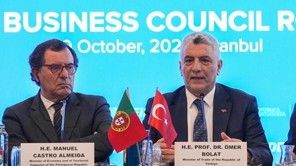 "Bu yıl önemli bir yükseliş görüyoruz, 3,5 milyar doları aşacağız, 9 aylık veriler onu gösteriyor. Gelecek yıl da hedefimiz 4 ila 4,5 milyar dolar arasında ticaretimizi yükseltmek. İki ülke arasında özellikle Portekiz'in güçlü bağlarının olduğu Latin Amerika'da ve Portekizce konuşan Afrika ülkeleri Angola, Mozambik, Ekvator, Gine gibi ülkelerde de birlikte işbirliği imkanlarımız, fırsatlarımız olduğunu düşünüyorum. Benzer bir şekilde de Türkiye olarak bizim de güçlü bağlarımız olan Balkanlar, Orta Doğu, Kuzey Afrika ve Orta Asya ülkelerinde de Kafkaslar'da da Türk ve Portekizli iş insanları arasında ortaklıklar ve işbirlikleri için büyük bir fırsat var."