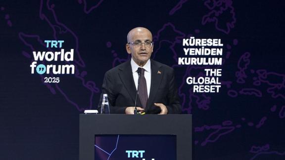Şimşek, İstanbul'da düzenlenen TRT World Forum 2025 programında "Ekonominin Ön Safları: Ticaret Çatışmaları ve Yeni Küresel Rekabetler" başlıklı konuşma gerçekleştirdi.